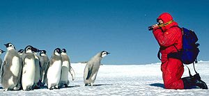 პინგვინები მიეკუთვნებიან იმ იშვიათ ცხოველებს, რომლებსაც სრულებით არ ეშინიათ ადამიანის. მათი ინტერესი ადამიანისა და მათი აპარატურის მიმართ ხშირად მოსაბეზრებელიცაა. კარავთან ჩავლისას პინგვინები გრძელ რიგს ქმნიან, რათა თითოეულმა შეიჭყიტოს შიგ. ალბათ ისინი ადამიანებს გიგანტურ პინგვინებად თვლიან, რომლებიც ანტარქტიდაზე დასახლდნენ.
